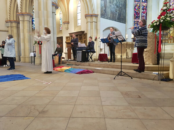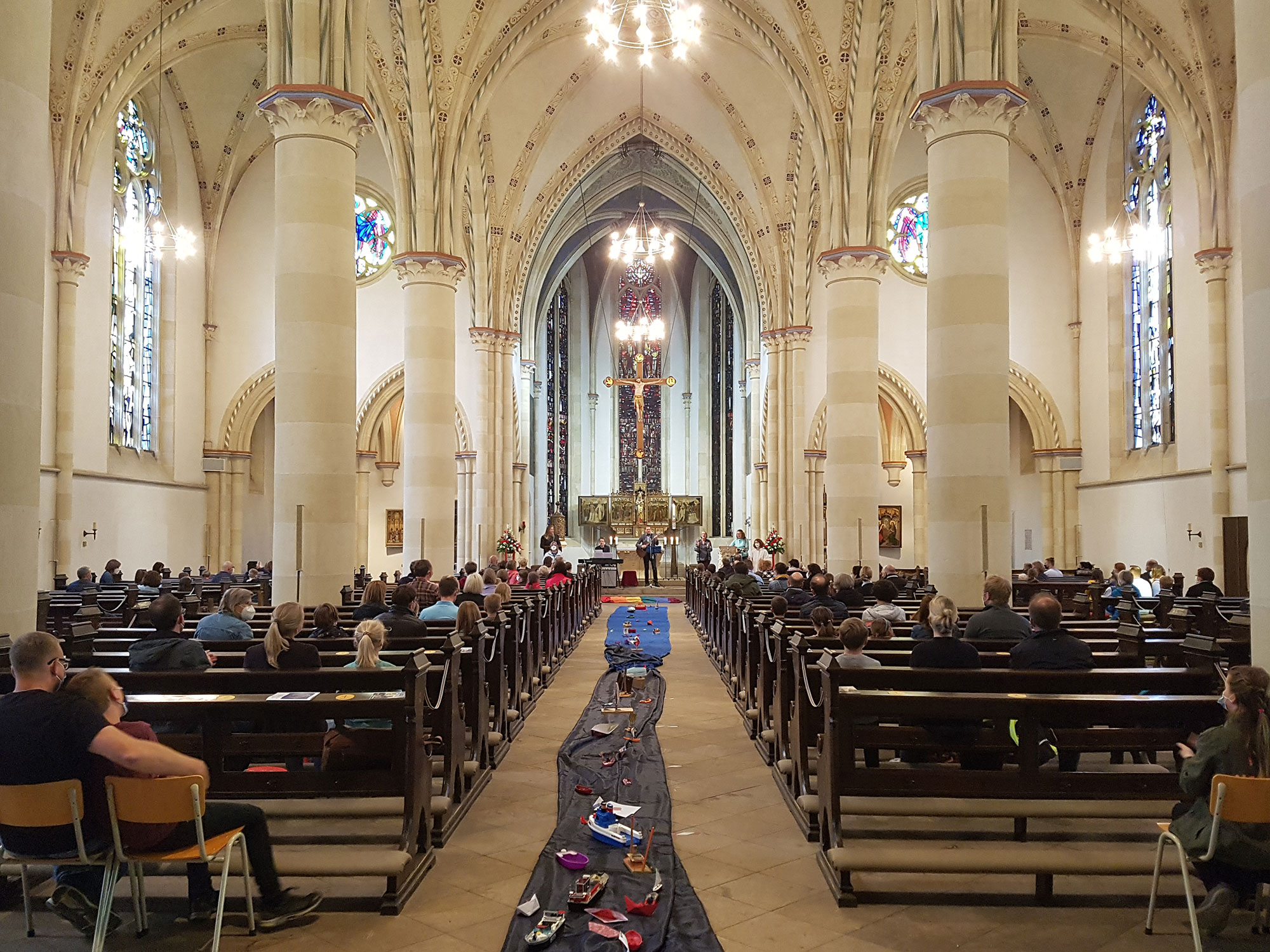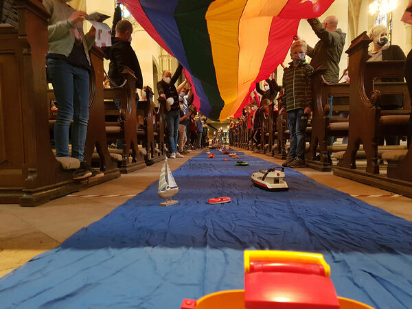 Die größte Kirche in der Stadt war gerade weitläufig genug, um notwendige Abstandsregeln und andere Voraussetzungen, die in diesem Jahr das umsichtig geplante inhaltliche Programm des Familienwochenendes auch formal geprägt haben, garantieren zu können. Gut gerüstet konnten wir also in diesen Tagen erste vorsichtige Schritte zu gemeinschaftlichem Erleben wagen. Eine gemeinsame Impulsandacht am Freitag im späten Nachmittag war ein gelungener Auftakt für das Familienwochenende. Das Motto: „Vertrau mir, ich bin da!“ hätte in diesen Zeiten nicht treffender sein können…